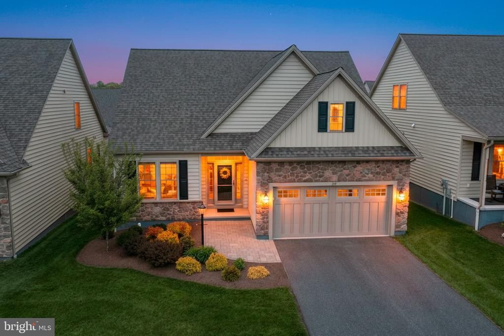 814 Summer Breeze Path is a beautifully maintained, four‑year‑young home located in the highly sought‑after Honeycroft community, built by renowned Cedar Knoll Builders. Lightly lived in and truly better than new, this home features numerous post‑construction upgrades including enhanced lighting, electrical additions, and window treatments included throughout. The main level offers a desirable open floor plan filled with natural light, highlighted by high‑quality luxury vinyl plank flooring and a warm gas fireplace. The bright white kitchen is both stylish and functional, featuring granite countertops, center island, pantry storage, and seamless flow into the living and dining areas. A sun room addition extends the living space and opens to an oversized composite deck with steps to grade—perfect for entertaining or relaxing outdoors. The first‑floor primary suite provides comfort and privacy, accented by a charming barn door leading to the primary bath. Also on the main level is a guest bedroom or study with an adjacent full bath, along with a convenient first‑floor laundry room complete with a work sink. Upstairs, a spacious bedroom offers a large adjacent sitting area and a dedicated full bath, ideal for guests or extended use. Additional features include an oversized walk‑in attic storage room, propane heat, ceiling fans (or wiring) in all rooms, and a thoughtfully upgraded lighting package. The home is complemented by a high‑ceiling basement with a smooth, enameled floor and a two‑car garage finished with a matching textured enameled surface—offering both practicality and a clean, finished appearance. This bright, sunny, and meticulously cared‑for home combines modern comfort with quality construction in a premier community setting.